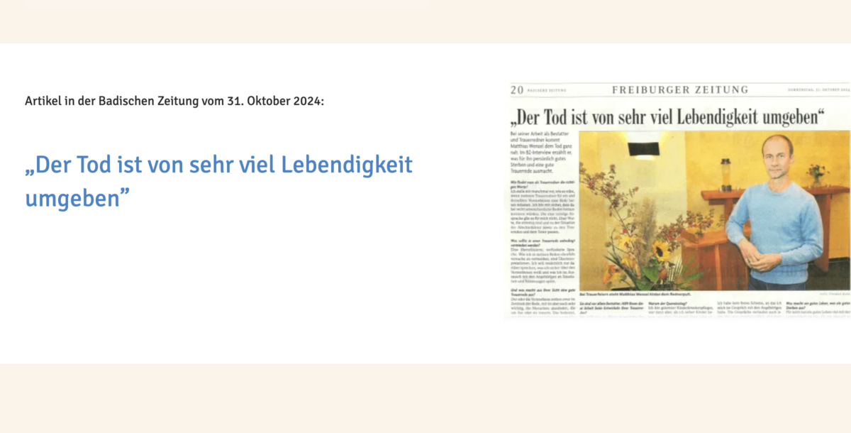 - Professionelle Ausgestaltung der Inhalte zum sensiblen Thema Bestattung