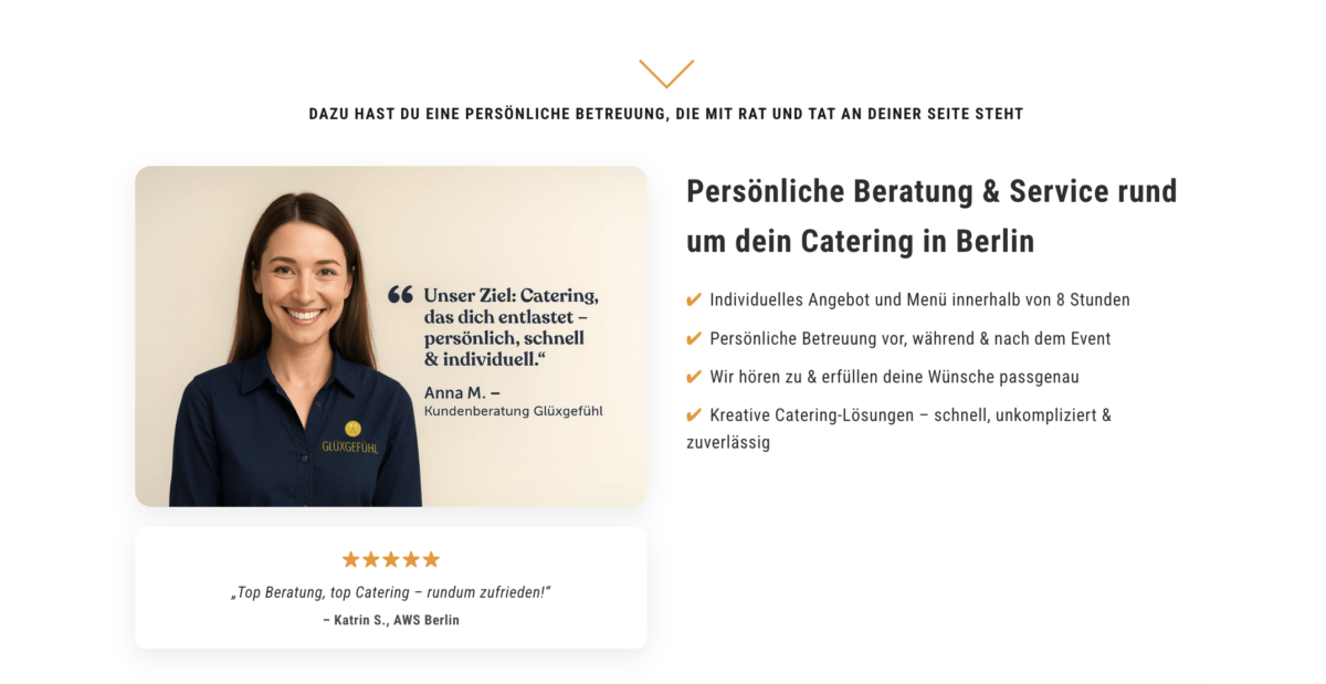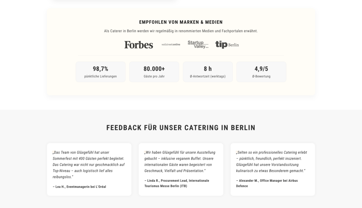 Modernes Catering-Webdesign: Glüxgefühl Berlin im digitalen UX-Check