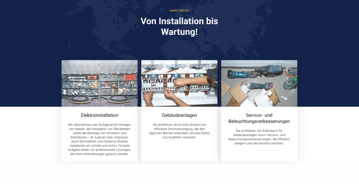Die Website von Elektro Labbash bietet einen gelungenen Mix aus Übersichtlichkeit, moderner Gestaltung und zugänglicher Nutzerführung. Bereits der erste Eindruck vermittelt Seriosität und Professionalität, was insbesondere durch die klare Navigation und die hochwertige Umsetzung zentraler Inhalte unterstützt wird. Die Menüführung ist intuitiv, sodass Besucher sich schnell zurechtfinden und ohne Umwege zu den wichtigsten Leistungen wie Installation, Wartung und Beratung gelangen. Die Farbgestaltung wirkt harmonisch und hochwertig; sie unterstreicht das Corporate Design und sorgt für ein vertrauensvolles Erscheinungsbild. Besonders hervorzuheben ist die angenehme Typografie, die Textinhalte auch für Laien leicht erfassbar macht und eine klare Leserführung garantiert.