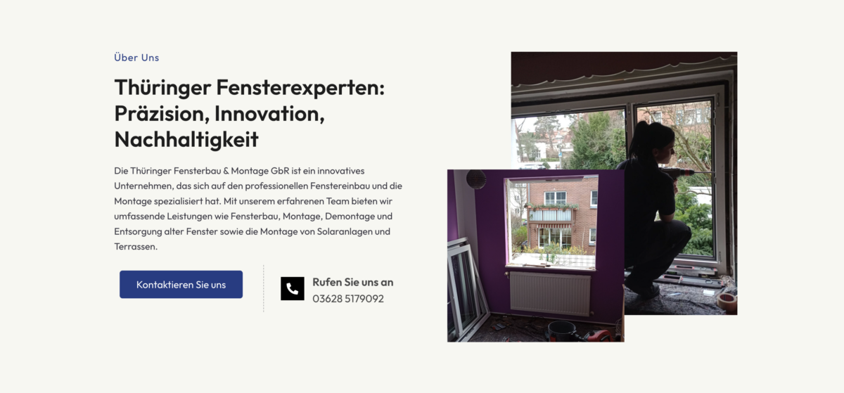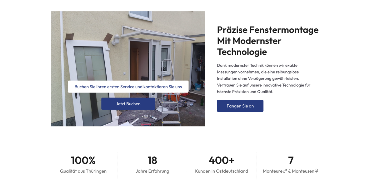 Die Website der Thüringer Fensterbau & Montage GbR (tfbm.de) ist ein gelungenes Praxisbeispiel für zeitgemäßen Webauftritt im Handwerksbereich. Besonders auffällig ist das moderne, strukturierte Design, das sowohl auf dem Desktop als auch mobil hervorragend funktioniert und einen benutzerfreundlichen Gesamteindruck hinterlässt. Die Farbgebung und Typografie wirken harmonisch und sorgen für ein professionelles Markenbild. Klare Call-to-Action-Elemente wie Kontaktbuttons und ein prominent platziertes Anfrageformular erleichtern die Kontaktaufnahme für potenzielle Kunden.