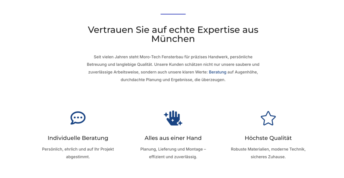 Praxisbeispiel 2024: So überzeugt die Website von Moro-Tech Fensterbau München in Design, Usability und Nutzerführung