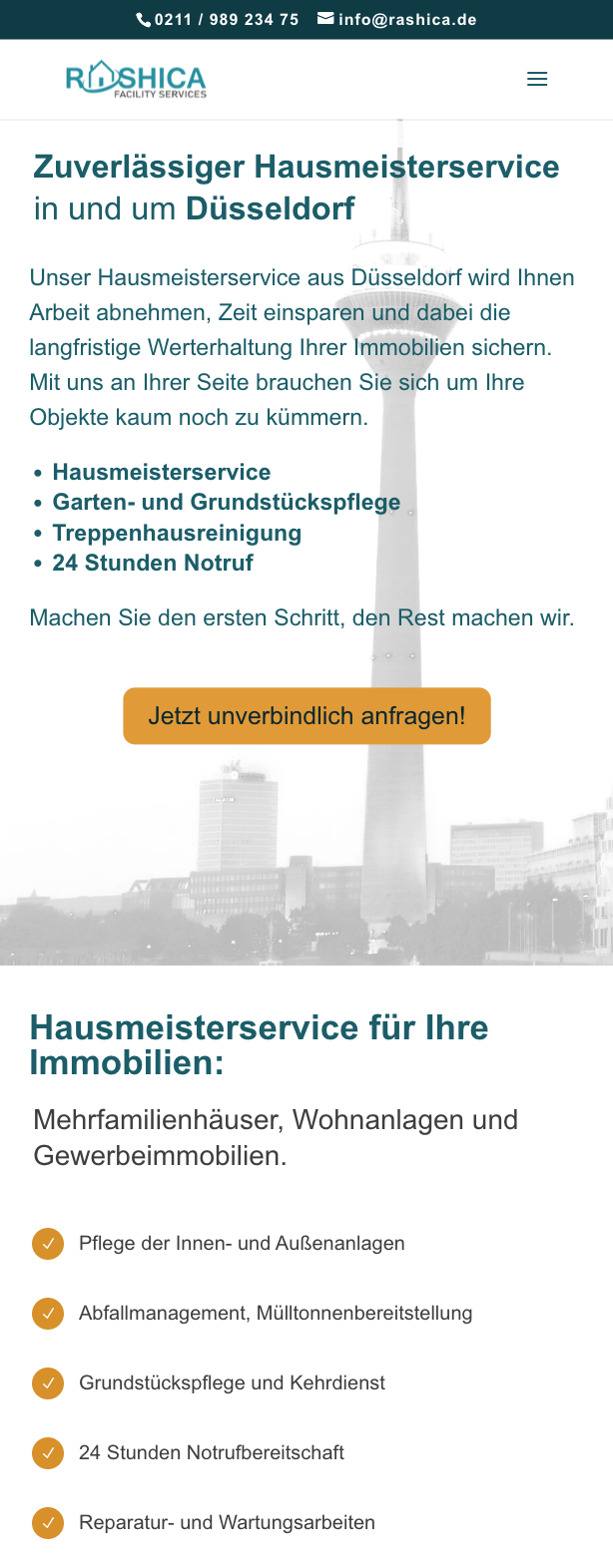 Erfahrung, Transparenz und modernes Webdesign: Rashica Hausmeisterservice überzeugt in Düsseldorf