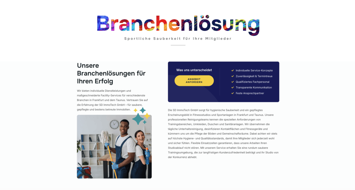 Professionelle Gebäudedienstleister-Website: SD ImmoTech GmbH setzt Maßstäbe