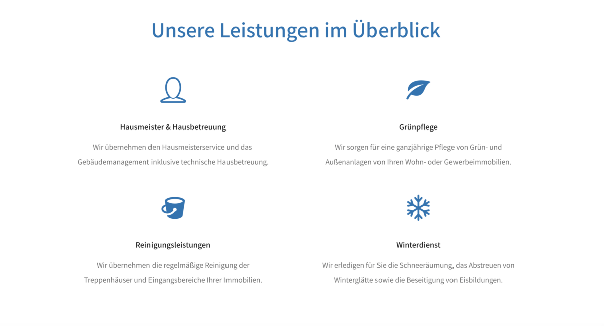 - Strukturierte Leistungsübersicht und überzeugende Call-to-Actions.