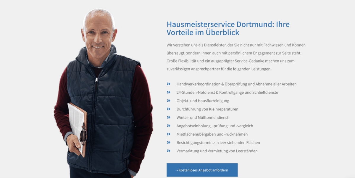 Hausmeisterservice in Dortmund: Malige Dienstleistungen im UX-& SEO-Check