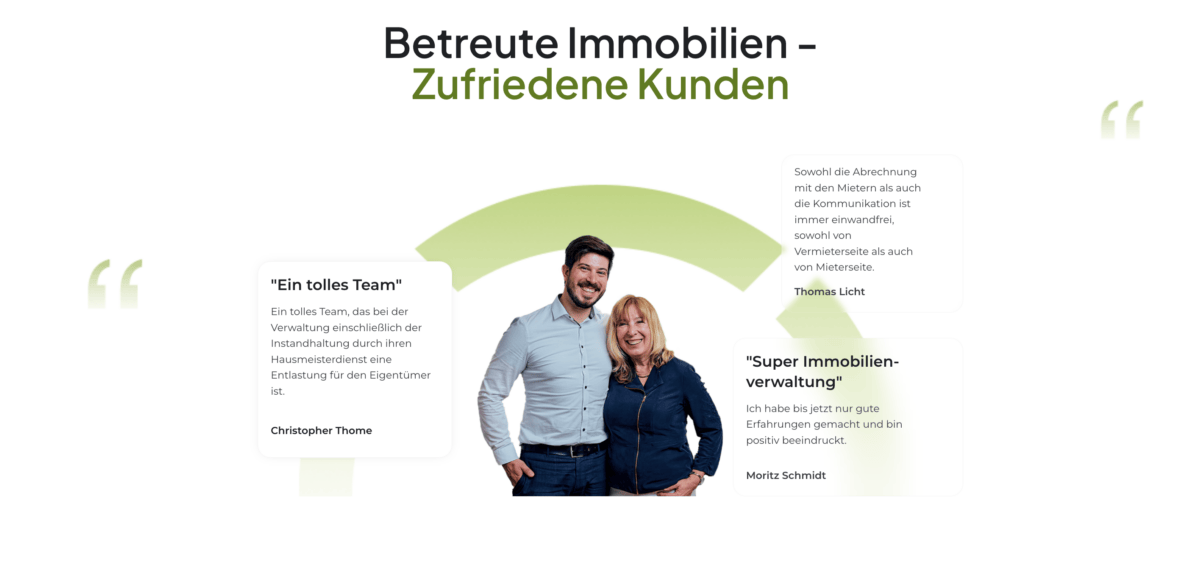 Besonders hervorzuheben ist die vorbildliche Geschwindigkeit der Seite – Inhalte und Bilder laden äußerst schnell, was nicht nur für eine gute User Experience sorgt, sondern auch SEO-relevant ist. Auch im Hinblick auf Responsivität erfüllt die Website aktuelle Standards und ist sowohl auf Mobilgeräten als auch Desktop hervorragend nutzbar. Alle Kontaktmöglichkeiten sind prominent platziert und der direkte Draht zur Hausverwaltung wird durch sympathische Porträts sowie persönliche Ansprache gestärkt.