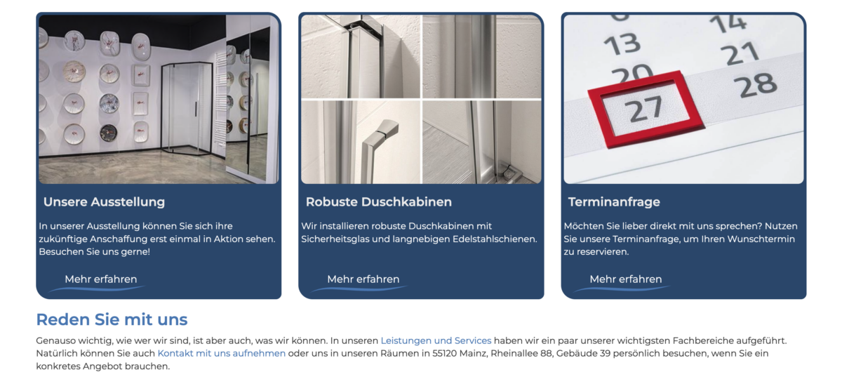 - Weitere Bilder/Referenzen könnten noch mehr Kundenansprache bieten