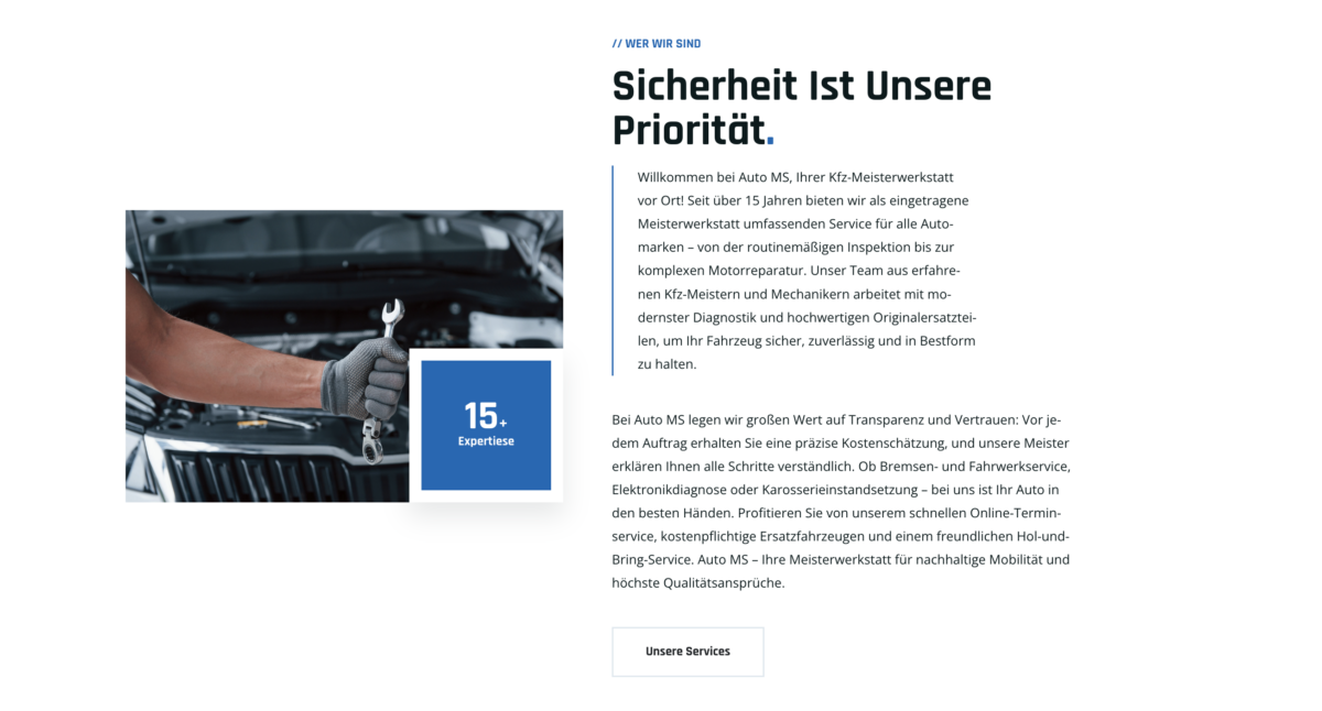 KFZ-Werkstatt Auto MS: Moderne Website-Gestaltung überzeugt im UX-Test