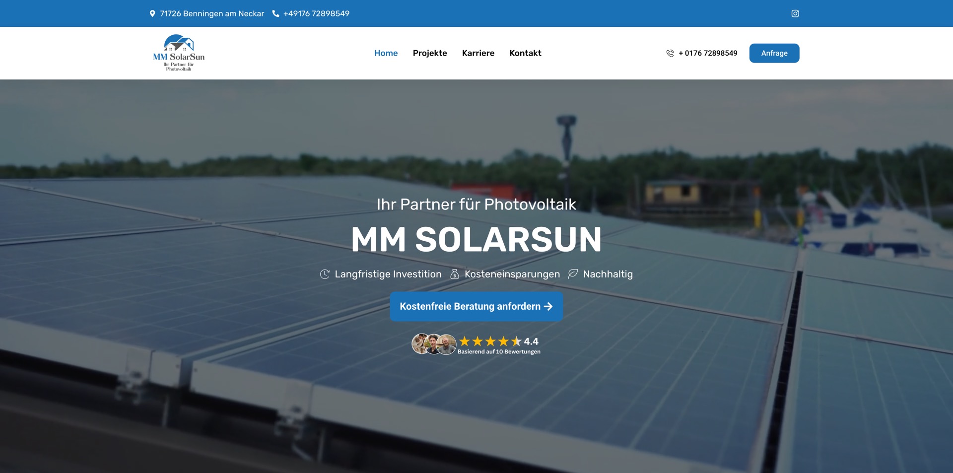 Modern, mobil, überzeugend: Website der MM SolarSun im Profil