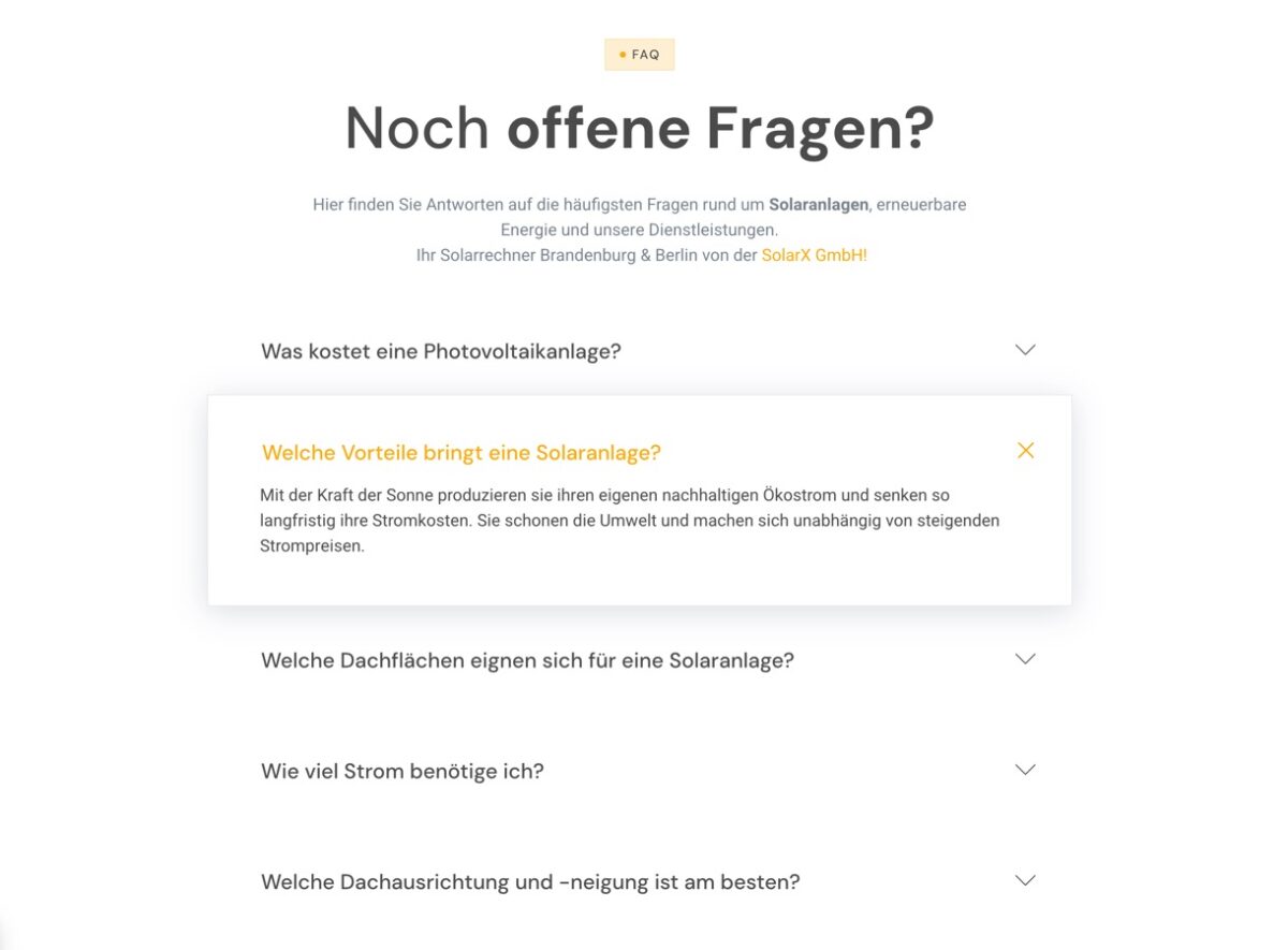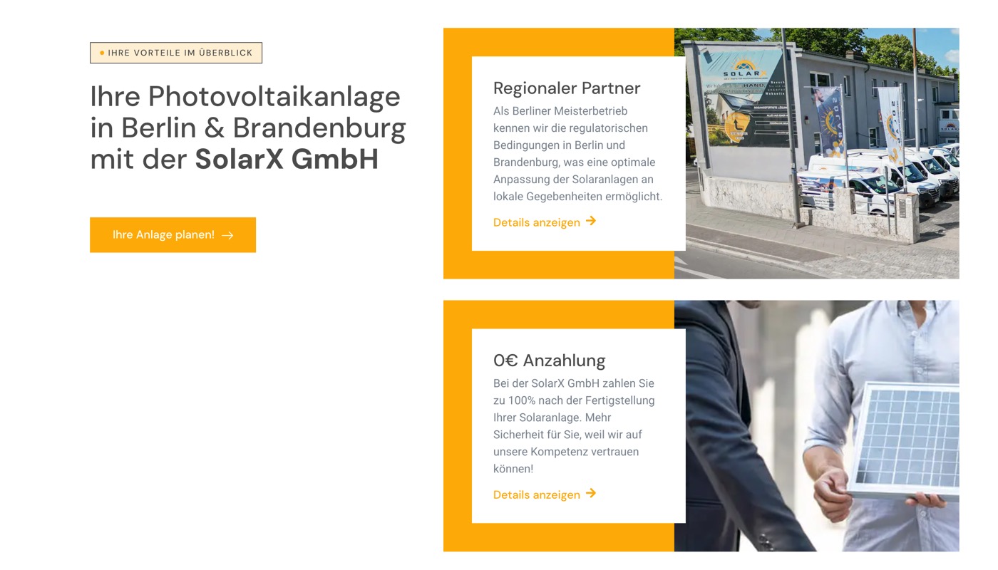 SolarX bietet mit dieser Website ein hervorragendes Beispiel für eine regionale Handwerksmarke im Photovoltaikbereich – serviceorientiert, überzeugend, konversionsstark.