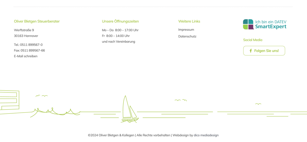Die Website von Bletgen & Kollegen Steuerberater aus Hannover überzeugt gleich auf mehreren Ebenen. Das äußere Erscheinungsbild ist hochmodern gestaltet und sorgt mit frischen Farben, klaren Linien und authentischer Bildsprache für Vertrauen bereits beim ersten Klick. Die Navigation ist intuitiv und nutzerfreundlich, sodass Mandanten und Interessenten jede gesuchte Information mit wenigen Klicks erreichen. Besonders positiv fällt die deutliche Strukturierung der Inhalte auf: Leistungen, Team und Fachnews sind logisch gegliedert und mit starken Call-to-Actions versehen.