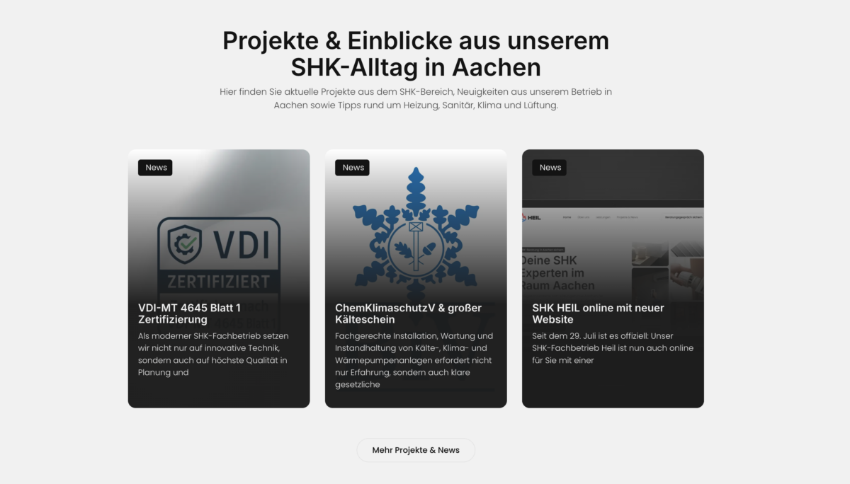 Der exzellente technische Aufbau, gekoppelt mit authentischen Inhalten, schafft hohes Vertrauen und Mehrwert. Insgesamt demonstriert die Website von SHK Heil, wie ein modernes Handwerksunternehmen online zeitgemäß, professionell und glaubwürdig auftreten kann – ein absolutes Best-Practice-Beispiel für die Branche.