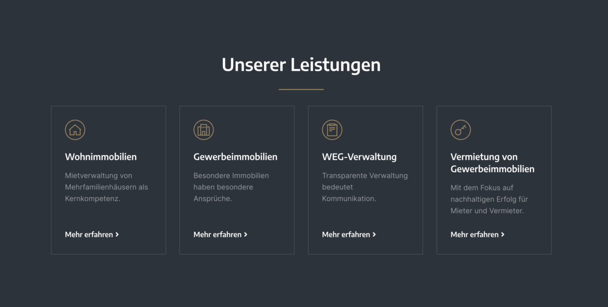 Die Webseite der Justen & Geller Immobilienverwaltung überzeugt auf ganzer Linie mit einem modernen, klar strukturierten Auftritt, der sowohl ästhetisch als auch inhaltlich höchsten Ansprüchen gerecht wird. Die klare Navigation und ein durchdachtes Seitenlayout sorgen dafür, dass sich Nutzer schnell auf der Seite zurechtfinden und direkt die wichtigsten Informationen zum Unternehmen und dessen Leistungen erhalten. Besonderer Wert wurde auf eine authentische Unternehmenspräsentation gelegt – sowohl das freundliche Fotomaterial als auch die persönliche Vorstellung des Teams schaffen echte Nahbarkeit.