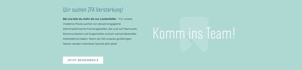 Die Nutzerführung wirkt klar: Navigation über „Über uns“, „Leistungen“, „Team“, „Kontakt“ ist intuitiv. Die Tonalität spricht Patient*innen an – insbesondere, wenn es um Ängste und individuelle Bedürfnisse geht („Wir nehmen uns die Zeit … Ihre Sorgen und Ängste ernst zu nehmen.“)
