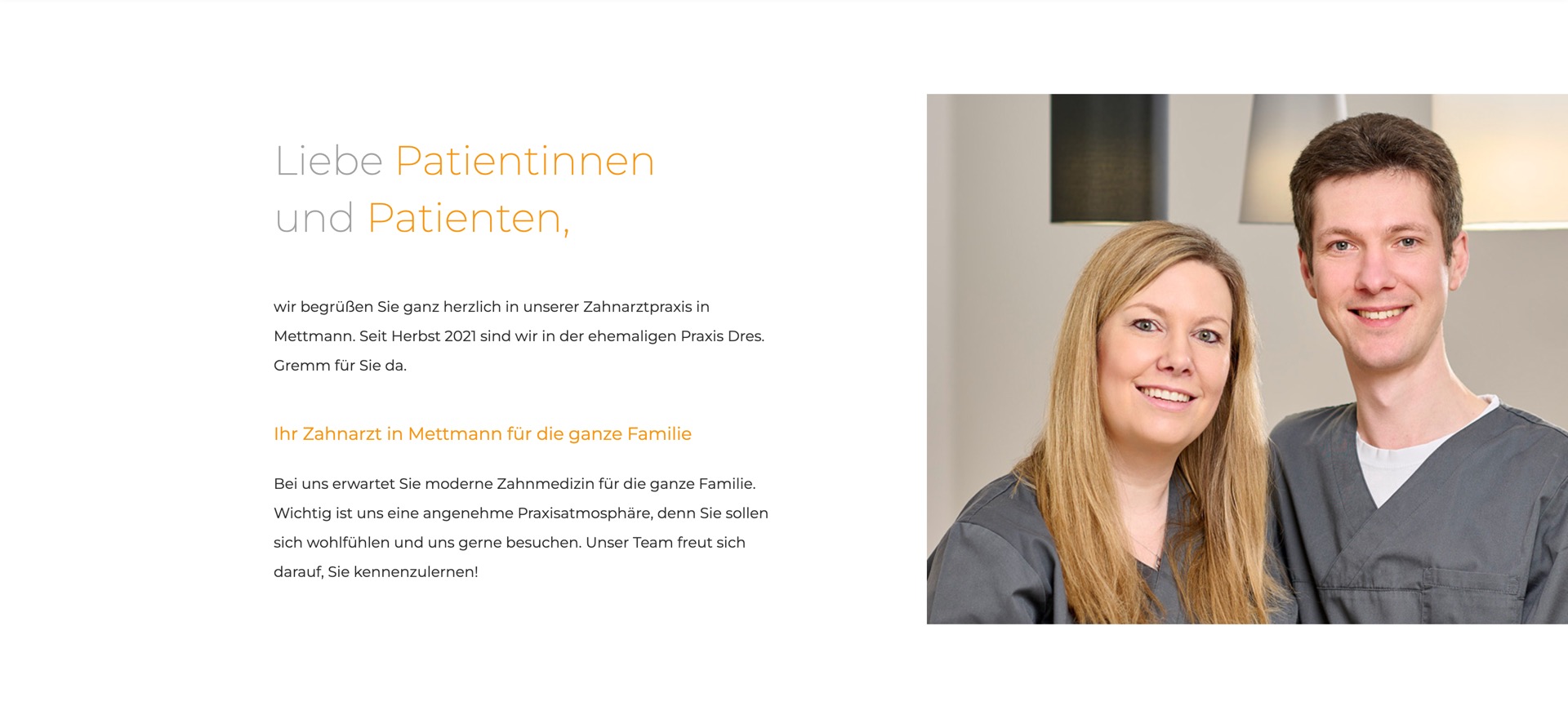 Die Website der Praxis Neander-Zahn in Mettmann ist ein gelungenes Beispiel für eine moderne Zahnarzt-Website mit hoher technischer und inhaltlicher Qualität. Direkt beim Einstieg vermitteln Design, Farbwahl und Typografie einen professionellen und vertrauensvollen Eindruck. Die Navigation ist klar strukturiert – Besucher finden schnell Informationen zu Praxis, Behandlungen, Services oder Kontakt. Besonders überzeugend sind die vielfältigen Funktionen im Patientenservice: Online-Terminwunsch, Notfalltipps, Formulare für Neupatienten und ein informativer Ratgeber steigern die Nutzerfreundlichkeit erheblich.