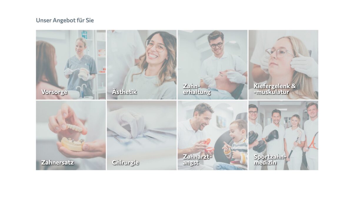 Die Website der Zahnärzte Dr. Kirchner & Kollegen vermittelt sofort, dass hier zahnmedizinische Expertise auf hohem Niveau gelebt wird. Gleich auf der Seite „Leistungen“ wird deutlich: moderne Verfahren wie digitale Kariesdiagnostik, digitales Röntgen, Behandlung ohne Bohrer, Mikroskop‑Wurzelkanalbehandlung, Sportzahnmedizin, CMD / Knirscherschiene, Ozontherapie u.v.m. sind Teil des Portfolios. Das spricht Patienten, die Technik, Präzision und moderne Ausstattung erwarten, sehr stark an.