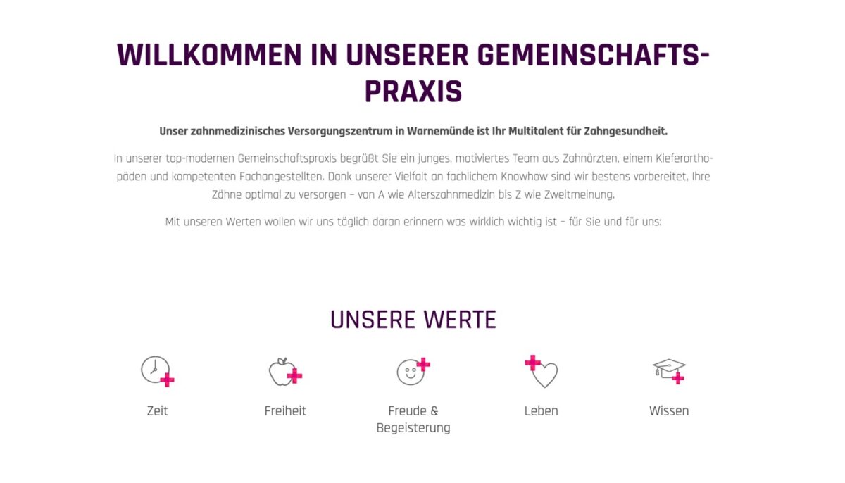 Digital, umfassend, serviceorientiert: Website von Zahnärzte Warnemünde im UX‑Check