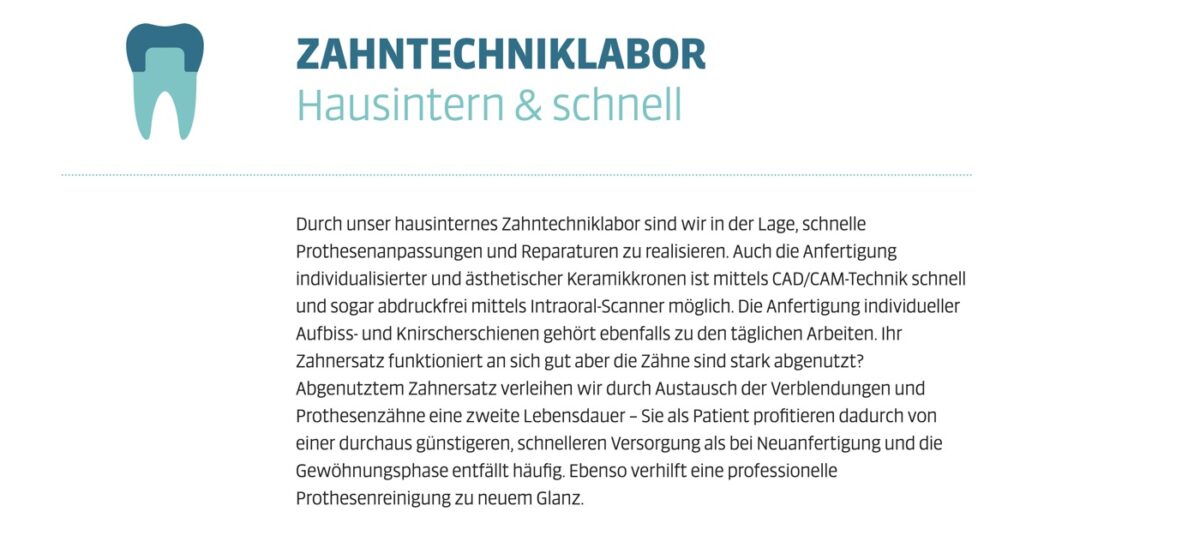 Insgesamt liefert die Zahnarztpraxis Schulze, Meisel & Kollegen eine technisch und inhaltlich hochwertige Website, die besonders durch ihre Transparenz, Patientenorientierung & moderne Praxisphilosophie überzeugt.